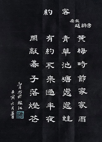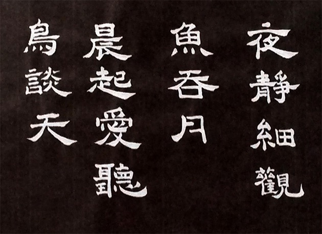 意訳:夜静かに、魚が池の月を飲み込むのをじっと見つめ、朝になると鳥のさえずりを聞くのが好きです。