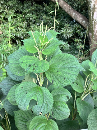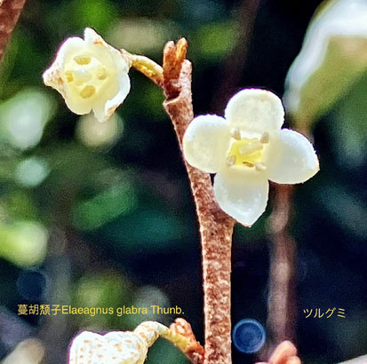 アカメガシワ(赤芽柏)トウダイグサ科Mallotus japonicus; ②ヤマモモ(杨梅)ヤマモモ科Morella rubra ;   ③マユミ(檀)ニシキギ科Euonymus sieboldianus; ④ ヤナギイチゴ柳苺イラクサ科Debregeasia orientalis ; ⑤アジサイ紫陽花アジサイ科Hydrangea macrophylla (栽培溢出、野生化);  ⑥カモガヤ鴨茅イネ科Dactylis glomerata