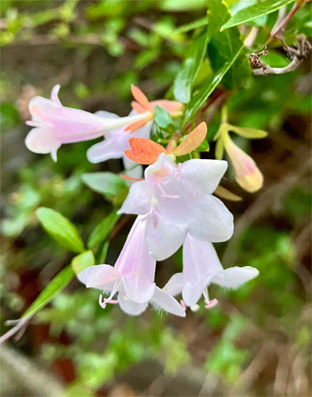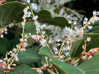 アベリア・ハナツクバネウツギ(六道木・大花糯米条)・スイカズラ科Abelia × grandiflora(栽培逸出);  ⑤、⑥ イタドリ・(虎杖)・タデ科Fallopia japonica var. japonica
