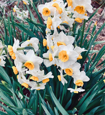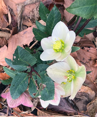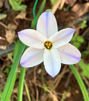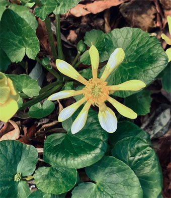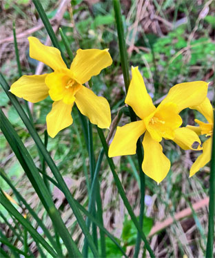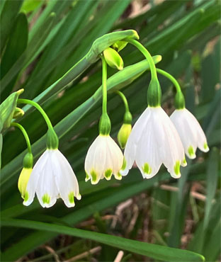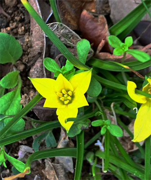 ヒガンバナ科: ④スノードロップGalanthus nivalis (逸出野生化);  ⑤キスイセン(逸出野生化);  ⑥キバナノアマンマナGagera lutea (栽培逸出);  ハナニラIpheion uniflorum