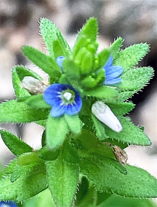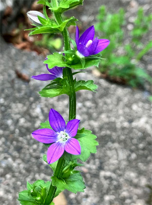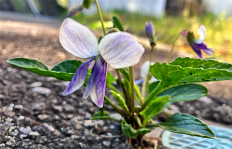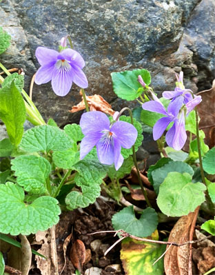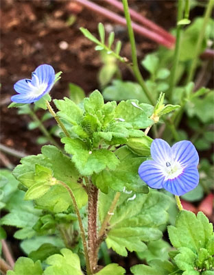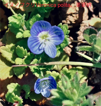スミレ科:①アリアケスミレ Viola betonicifolia var. albescens;   ② オオタチツボスミレViola kusanoana;  ③タチイヌノフグリ立犬の陰嚢・オオバコ科Veronica arvensis