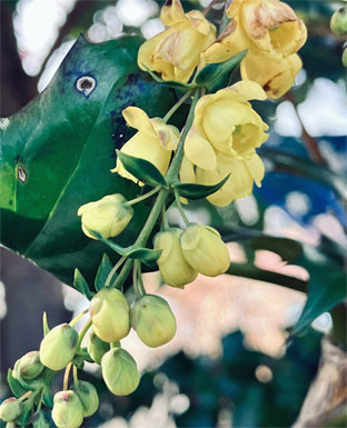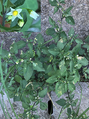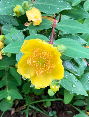キンシバイ・金糸梅オトギリソウ科Hypericum patulum ; ② マンリョウArdisia crenata ; ③ツユクサ露草・鴨跖草ツユクサ科Commelina communis ; ④ヤブジラミ藪虱セリ科Torilis japonica; ⑤イヌホオズキナス科Solanum nigrum