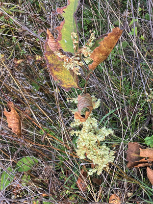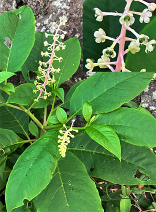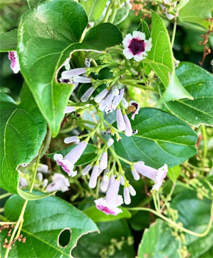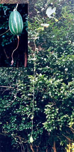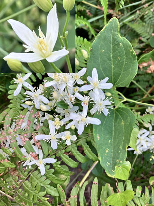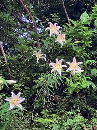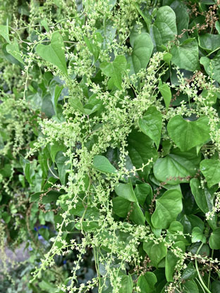 ハカタユリユリ科Lilium brownii var. viridulum ; ②センニンソウ仙人草キンポウゲ科Clematis terniflora; ヨウシュヤマゴボウ洋種山牛蒡・ヤマゴボウ科Phytolacca americana; ④ガガイモ蘿藦キョウチクトウ科Metaplexis japonica ; ⑤ヤマノイモ山の芋ヤマノイモ科Dioscorea japonica; ⑥ヘクソカズラ・屁糞葛アカネ科Paederia scandens
