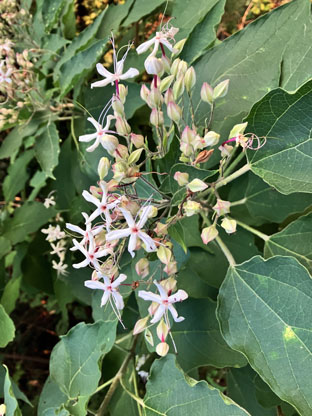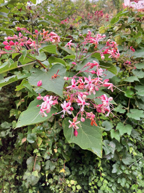 ヤマハギ・山萩・マメ科Lespedeza bicolor ; ②クサギ・臭木・クマツヅラ科Clerodendrum trichotomum ; ③シマトネリコ・光蜡树モクセイ科Fraxinus griffithii ; ④クリブナ科Castanea crenata; ⑤アオギリ青桐・梧桐・アオイ科Firmiana simplex