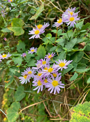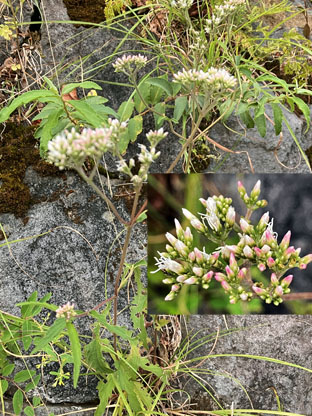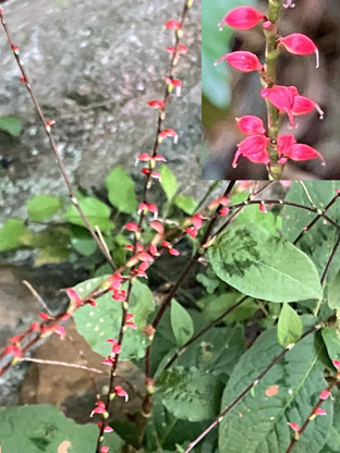 ハコネウツギスイカズラ科Weigela coraeensis; ②ガマズミ・莢蒾ガマズミ科Viburnum dilatatum; ③ タンキリマメ・痰切豆鹿藿マメ科Rhynchosia volubilis ; ④ヒヨドリジョウゴ 白英ナス科Solanum lyratum ; ⑤ヒヨドリバナ鵯花多花泽兰・キク科Eupatorium makinoi ; ⑥イヌコウジュ石荠苎シソ科Mosla scabra.