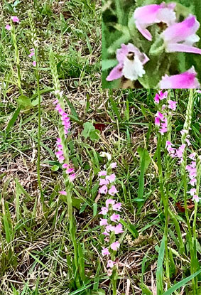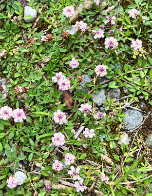 キキョウソウ桔梗草キキョウ科Triodanis perfoliata;    ②イワダレソウクマツヅラ科Phyla nodiflora;  ③ネジバナラン科Spiranthes sinensis var. amoena;  ④ヤブムラサキシソ科Callicarpa mollis;  ⑤ガマズミガマズミ科Viburnum dilatatum;   ⑥キンシバイオトギリソウ科 Hypericum patulum