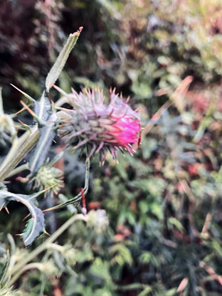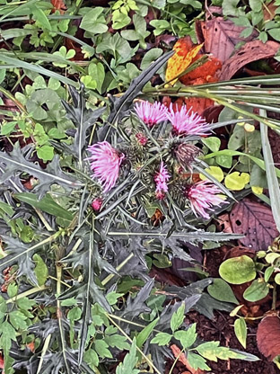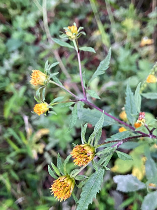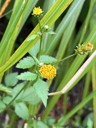 キク科:④ノハラアザミ野原薊Cirsium oligophyllum; ⑤セイタカアワダチソウ(背高泡立草)Solidago altissima (侵略的外来種、蔓延させない様に);  ⑥コセンダングサ小栴檀草Bidens pilosa var. pilosa