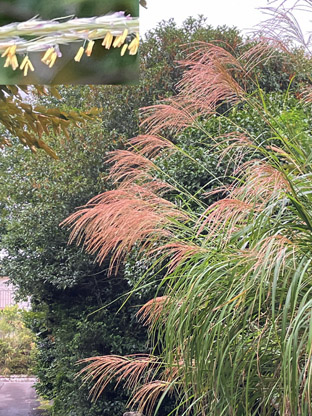 イネ科:①チカラシバ Pennisetum alopecuroides;  ②シロガネヨシ Cortaderia selloana(栽培逸出);   ③ススキ Miscanthus sinensis
