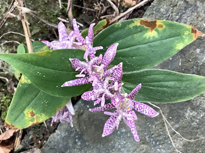 ホトトギス・杜鵑草・ユリ科Tricyrtis hirta; ②メマツヨイグサ雌待宵草・アカバナ科Oenothera biennis; ③クサギ(臭木)・シソ科Clerodendrum trichotomum