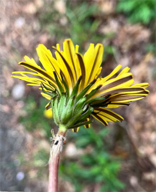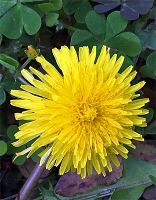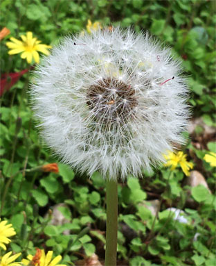 ①セイヨウタンポポ(西洋蒲公英 Taraxacum officinale)②頭状花序、③果序。④、⑤カントウタンポポTaraxacum platycarpum (在来種) ⑥トウカイタンポポTaraxacum longeappendiculatum (在来種)(4月中旬撮影)
