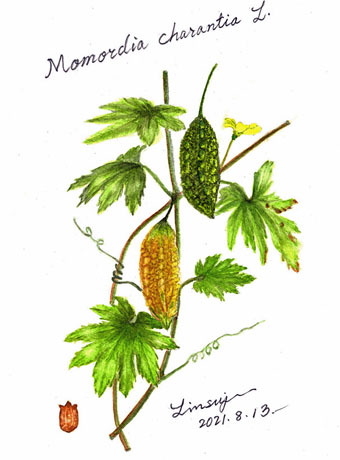 苦瓜Momordia charantia(右)